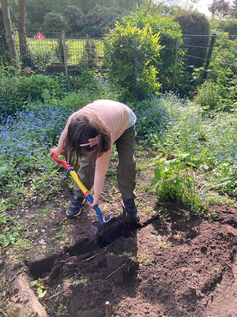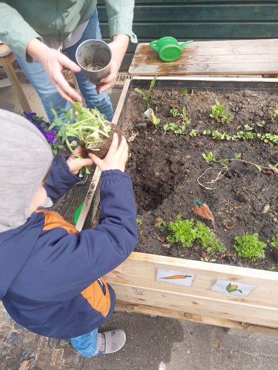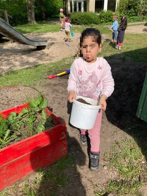 Kitakind bei der Kartoffelaussaat