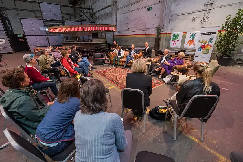 Wir bedanken uns bei allen Speaker:innen auf der Bühne und in den Workshops, den inspirierenden Aussteller:innen auf dem Markt der Möglichkeiten und allen Teilnehmenden die durch Ihre Expertise und Ihr Engagement das Event bereichert und wertvolle Perspektiven in die Fachtagung eingebracht haben. Ein besonderer Dank geht an die internationalen Gäste, die einen weiten Weg auf sich genommen haben und es uns ermöglicht haben, einen Blick über den Tellerrand hinaus zu werfen. Doch natürlich möchten wir uns auch bei den Teilnehmenden aus Bremen bedanken, die sich die Zeit genommen und sich aktiv beteiligt haben. Dank des großen Engagements aller Beteiligten vor, auf und hinter der Bühne konnten vielfältige Perspektiven aus den Bereichen Landwirtschaft, Ernährung, Wissenschaft, Wirtschaft, Politik und Verwaltung einbezogen werden. Wir hoffen die Teilnehmenden konnten anregende Impulse für Ihr weiteres berufliches Handeln aus den Gesprächen mit Kolleg:innen, aus den Workshops und dem Besuch des „Markt der Möglichkeiten“ mitnehmen.